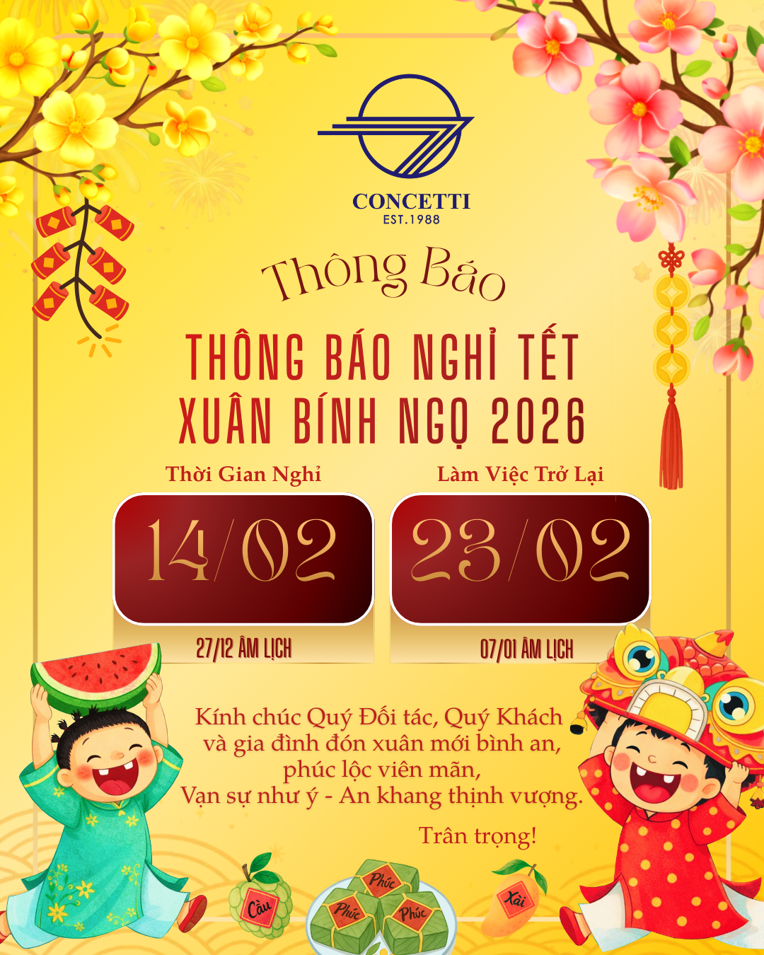 Thông báo nghỉ Tết Nguyên đán 2026
