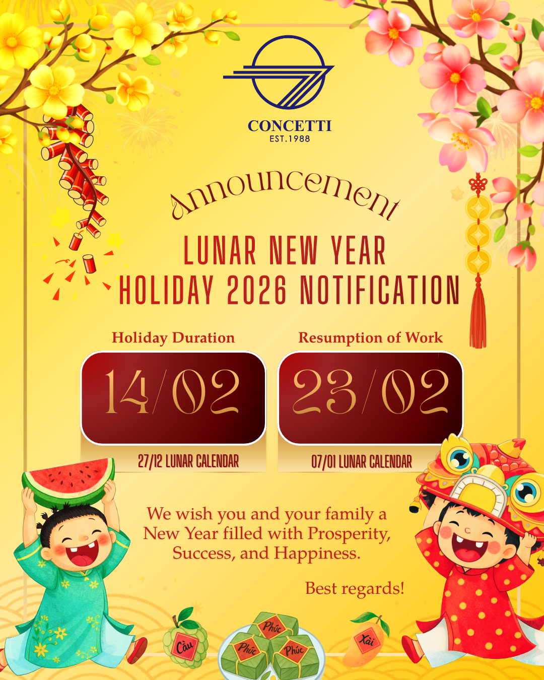 Thông báo lịch nghỉ Tết Nguyên Đán Xuân Giáp Thìn 2024 (05/02/2024)